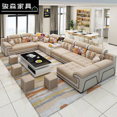 • 骏森新款猫抓皮沙发客厅大气现代大户型u型整装科技布乳胶沙发 猫抓皮防污耐刮-卡其色 标准版海绵款/六件套送赠品 3.6m