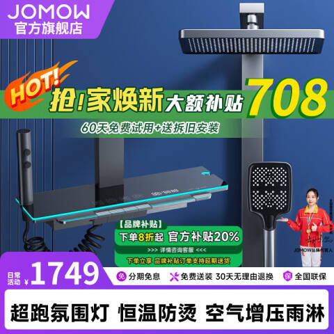 • JOMOW淋浴花洒套装增压家用浴室恒温花洒智能数显沐浴淋浴全套钢琴按键 X8枪灰色【恒温防烫】增压数显