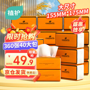 • 植护气垫抽纸4层360张*40大包纸抽整箱批发悦色橙餐巾纸卫生纸面巾纸