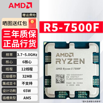 • AMD锐龙CPU/R5/R7/R9/5700x3d/9700x/9800x3d盒装台式电脑散片处理器R57500F【全新散片】
