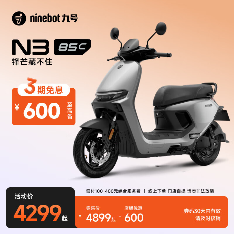 • 九号(Ninebot)电动车2025款 电动摩托车N3 85c 智能智驾 长续航电摩【门店自提】 颜色可到门店选